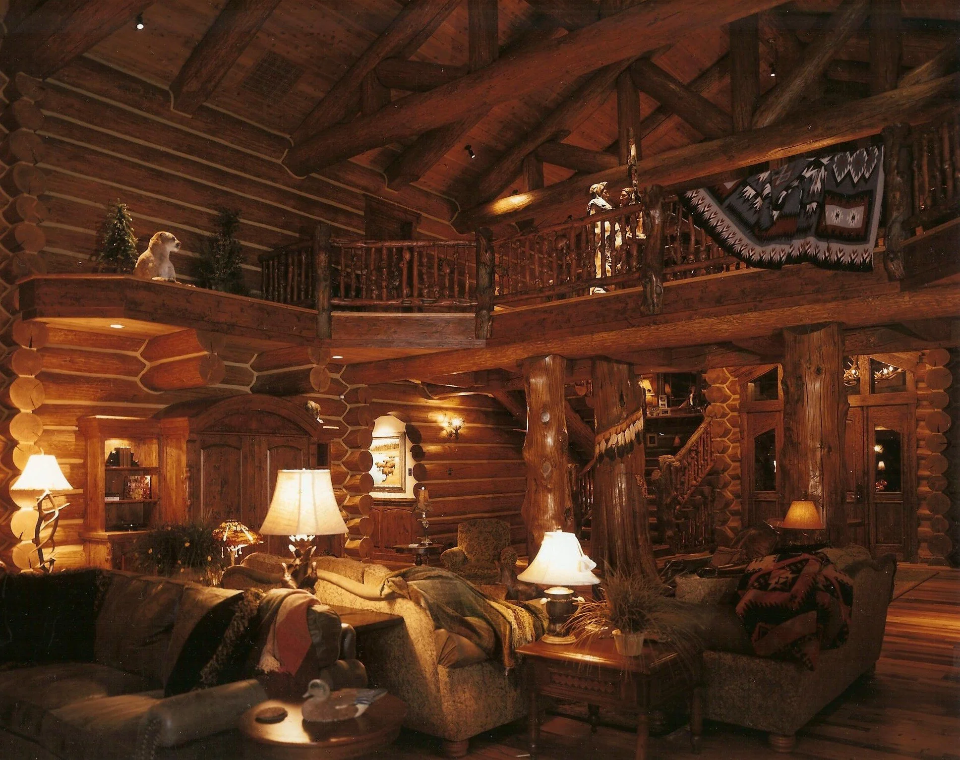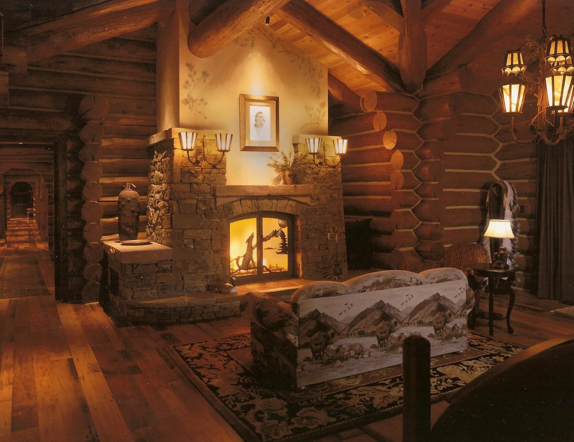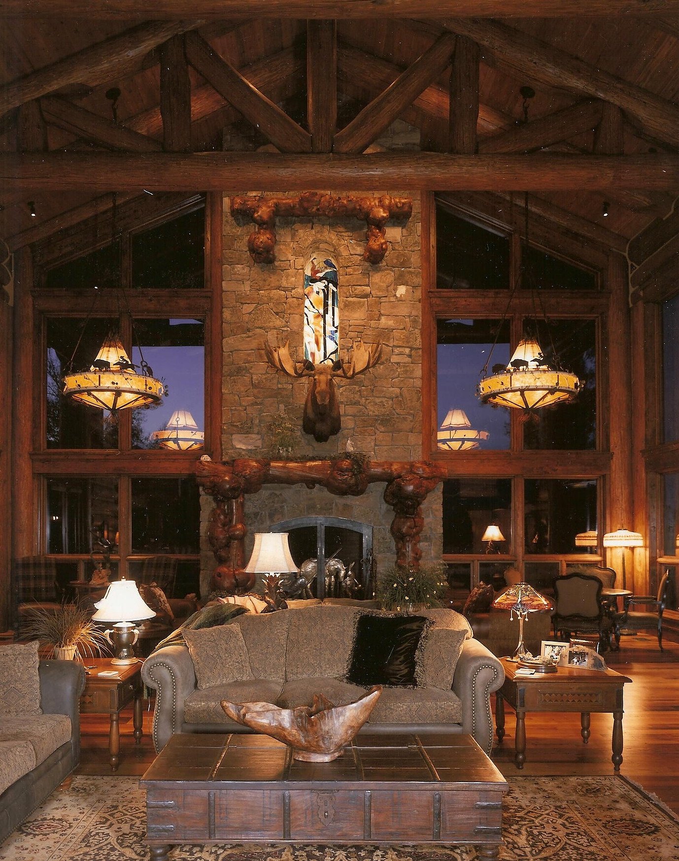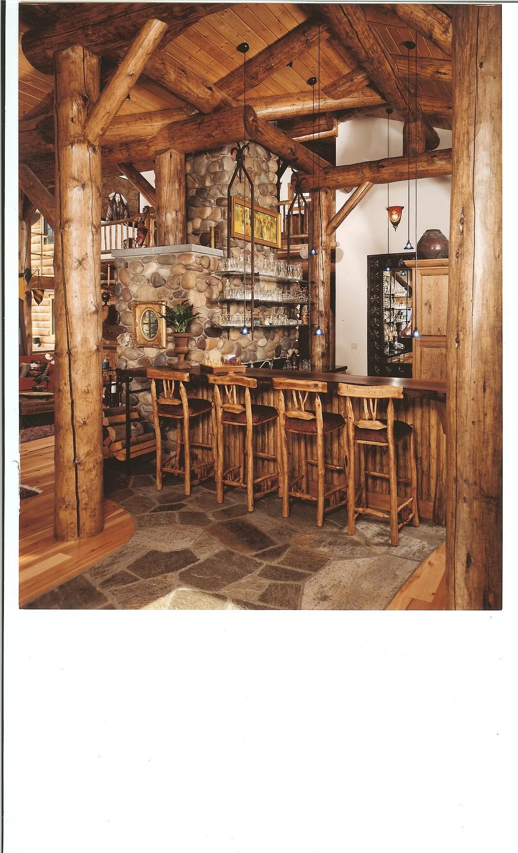 Architectural Scale: 8,500 sq ft log-frame structure utilizing regional timber and natural-stone detailing