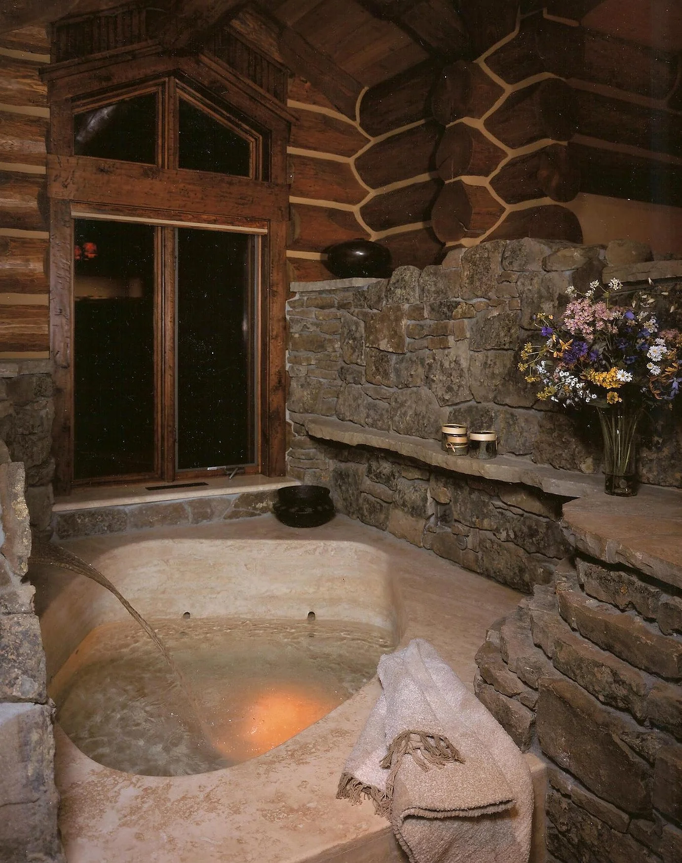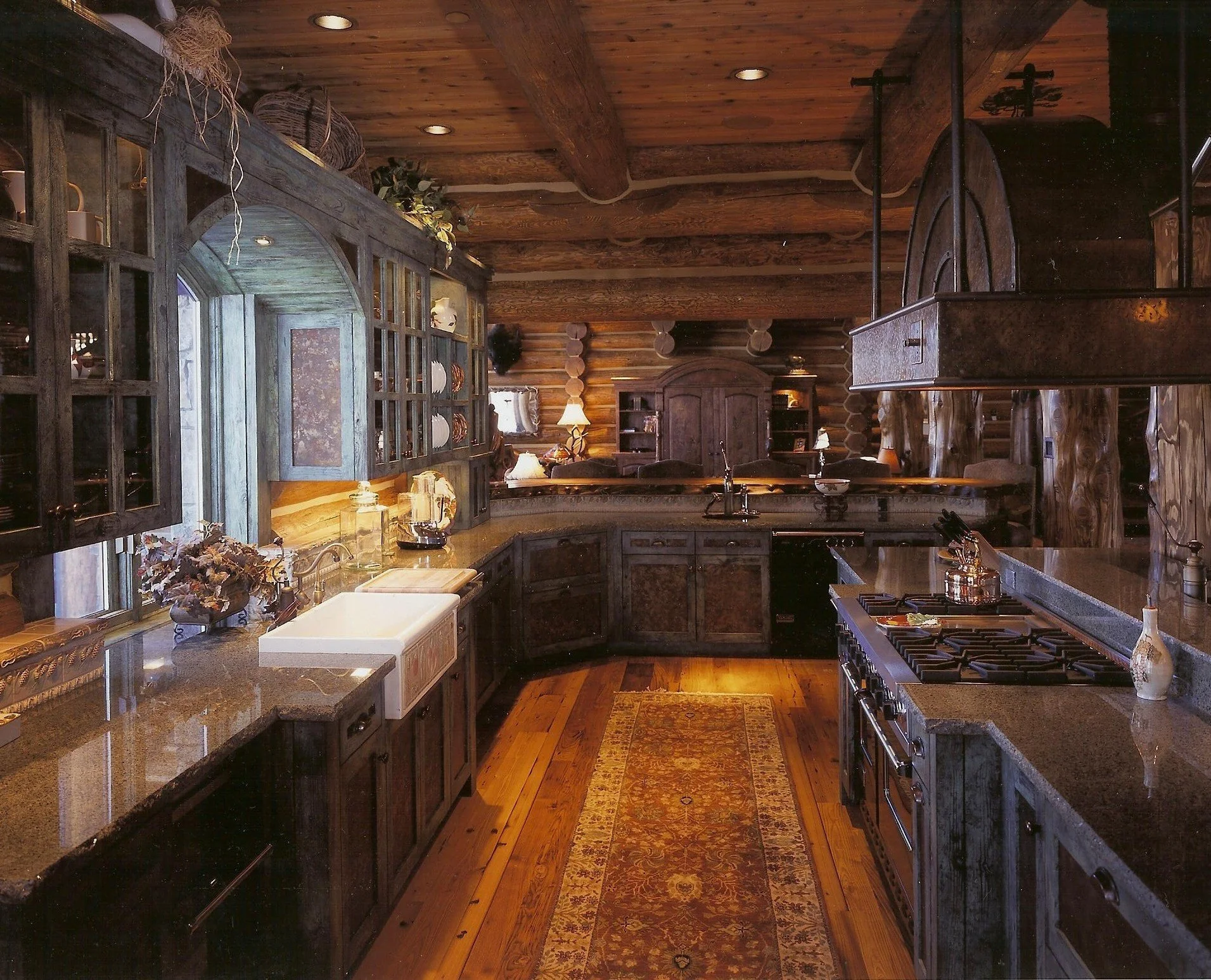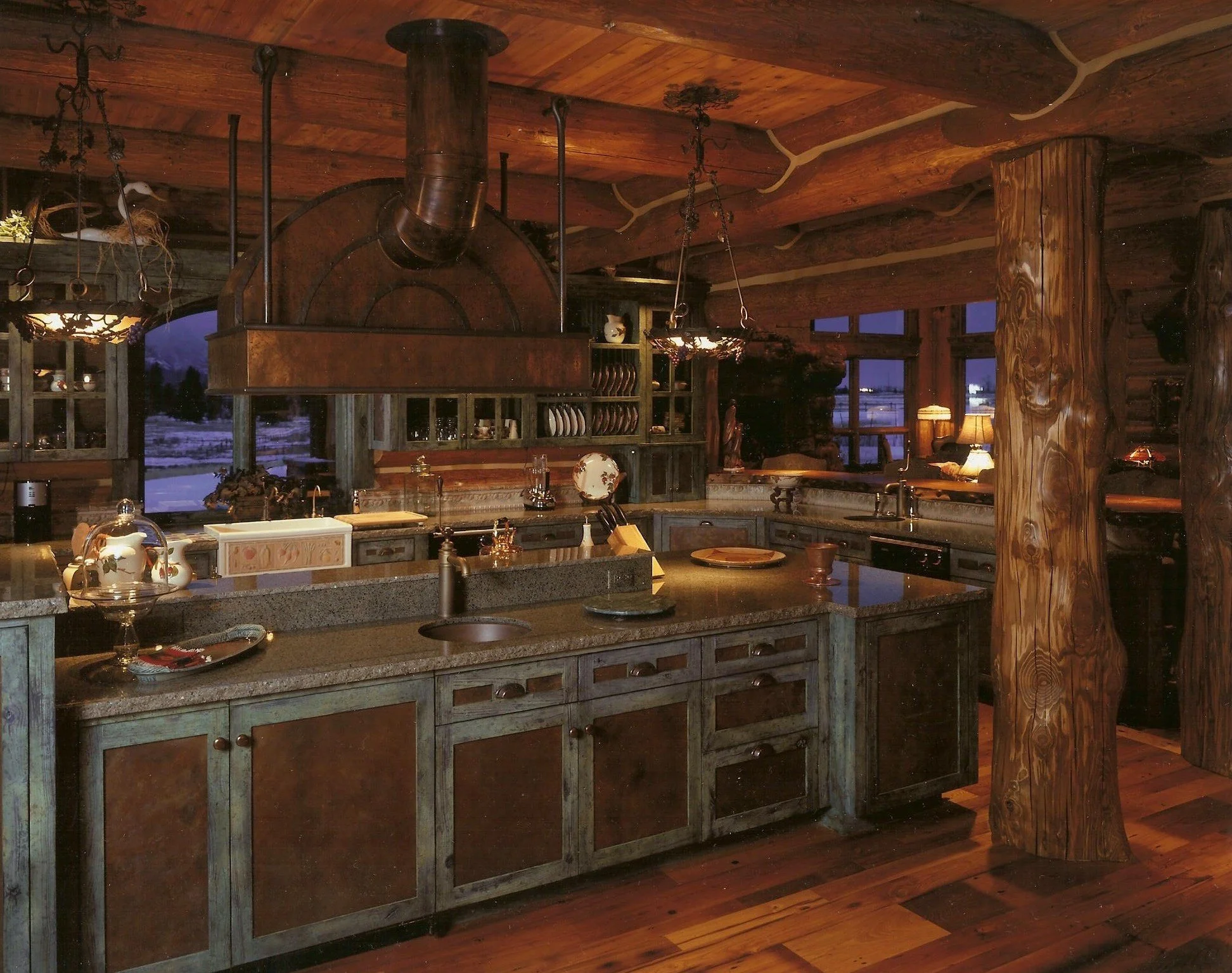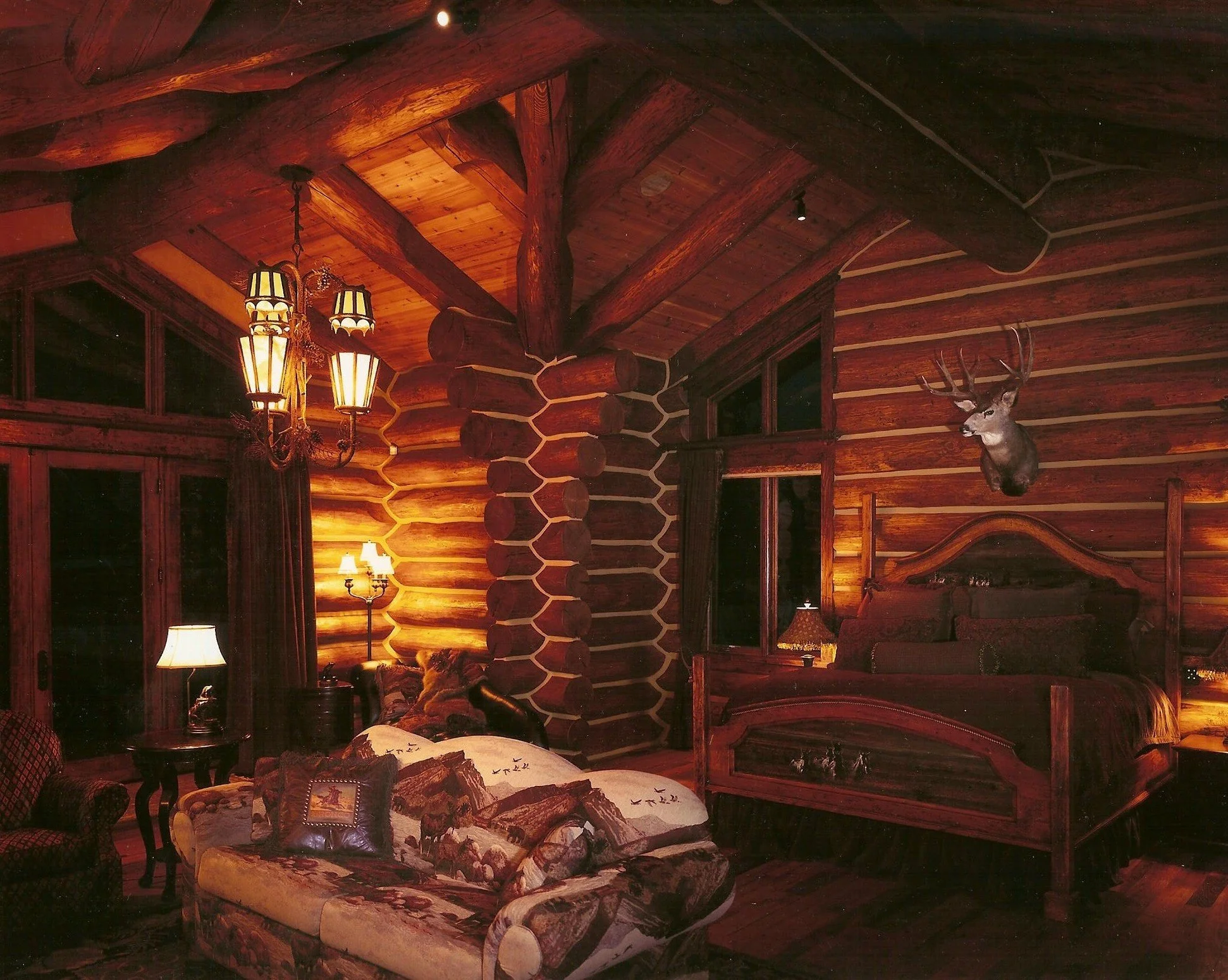 Architectural Scale: 8,500 sq ft log-frame structure utilizing regional timber and natural-stone detailing